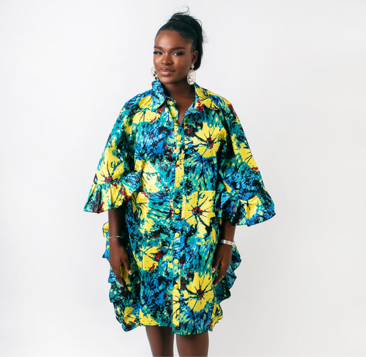 This line features playful, energetic pieces, including jumpsuits, skirts, and casual dresses. The vibrant prints and versatile styles reflect the rhythm and movement of African culture, making them perfect for everyday wear. Available in inclusive sizes to celebrate all shapes.